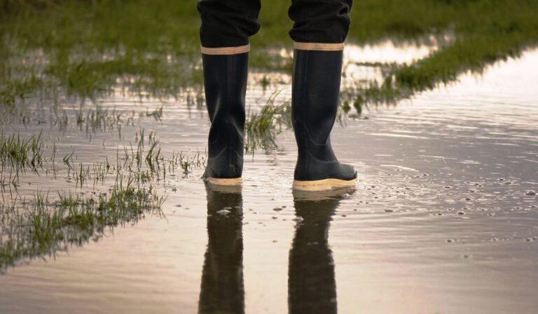 El césped amarillea por exceso de humedad. El suelo se satura de agua y las plantas mueren por asfixia radicular.