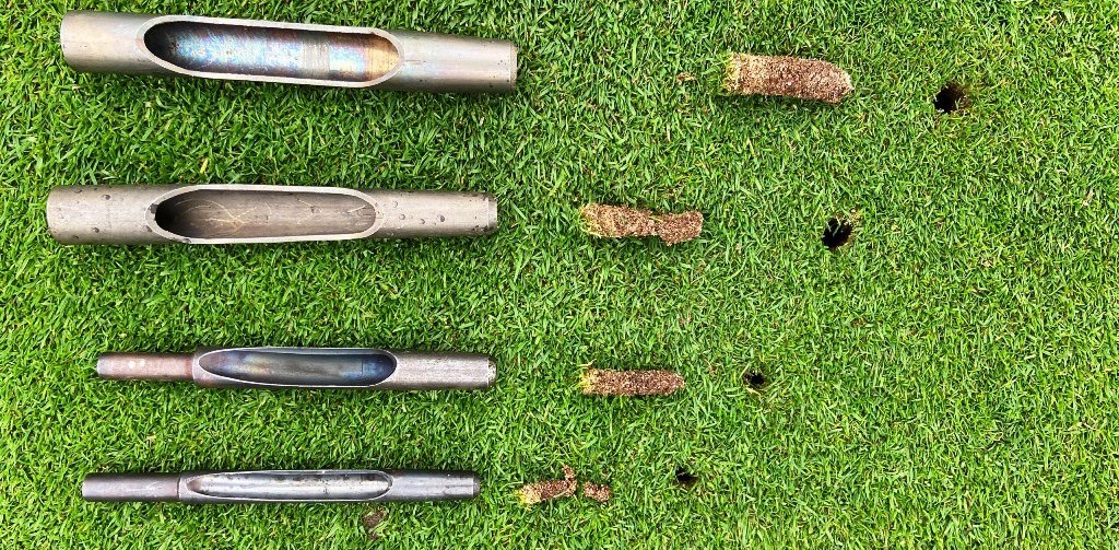 Este tipo de aireadores es sin duda el más eficaz y, el preferido por los profesionales. Las púas que pinchan el suelo son huecas, que extraen tapones de tierra del césped, depositandolos en la superficie.