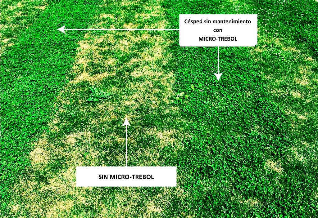 - El césped con micro-trébol proporciona un césped autorregenerable MICROTREBOL®, se reproduce vegetativamente por gran cantidad de estolones, que colonizan rápidamente aquellas zonas del césped en que han aparecido calvas debido a cualquier accidente (sequía, enfermedades fúngicas, plagas etc.). Menos resiembras