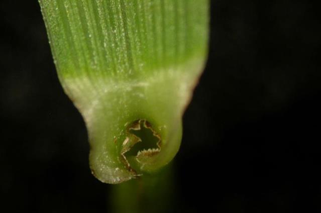 - La lígula es truncada y membranosa, con una longitud de 0’5-1 mms. y de color verdoso. La hoja tiene una anchura de 4-6 mms. aproximadamente.