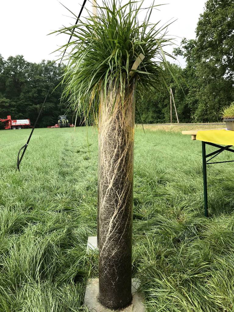 - Su sistema radicular es fibroso y potente, profundizando en el sustrato más que cualquier otra gramínea cespitosa. Alguna planta aislada puede presentar rizomas. Este es un carácter favorable siempre buscado en obtención de tipos cespitosos, al mejorarse la capacidad de colonización y fortalecerse el entramado radicular de la pradera.