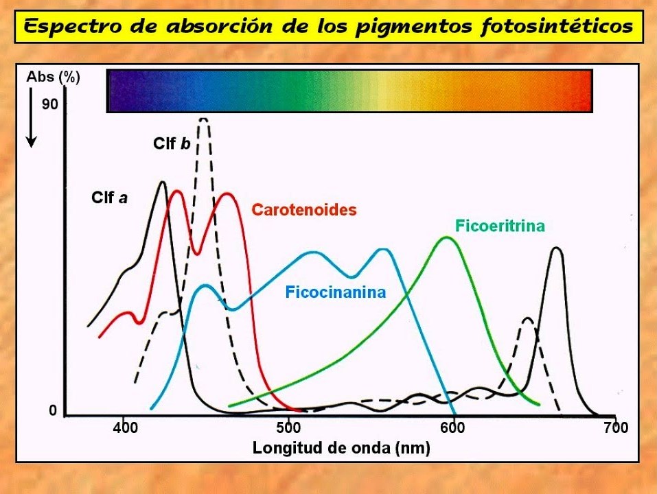 De otra parte si tenemos en cuenta que aparte de reducir la cantidad de luz disponible, también se reduce la luz útil, ya que el espectro de luz que las plantas verdes absorben (y usan para la producción de carbohidratos) principalmente son  naranja, rojo y luz azul, mientras que reflejan principalmente verde y amarillo (no muy eficaces en la fotosíntesis). Precisamente es el espectro de luz naranja, roja y azul son las que más se filtra a través de la sombra y sobre todo de la que producen las copas de los árboles.
