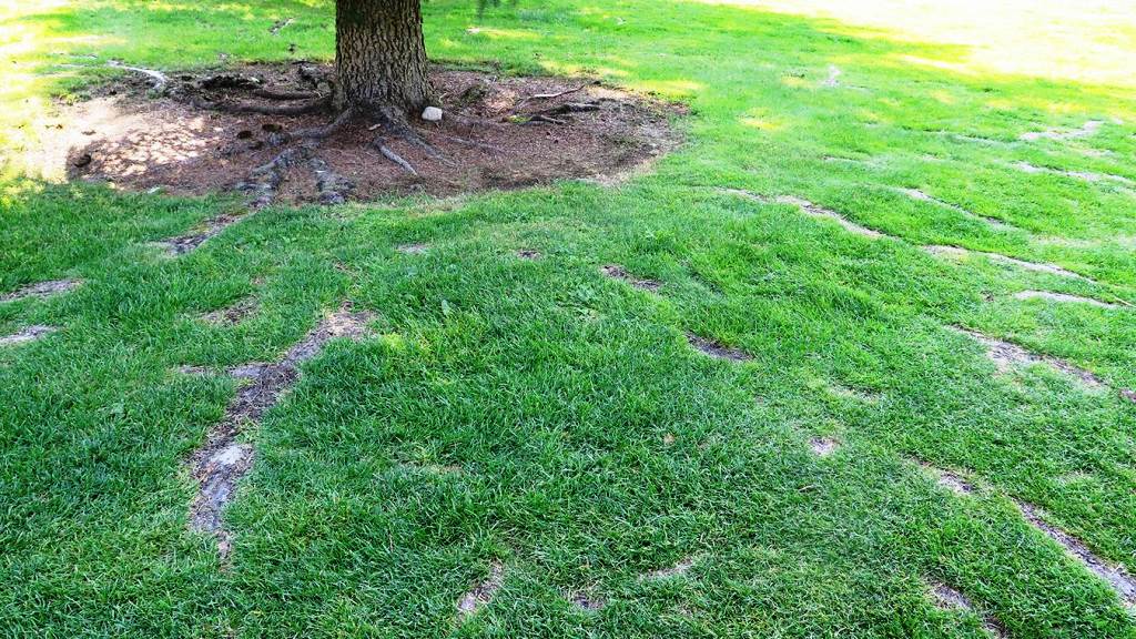 El sistema radicular de los arboles compite con el césped