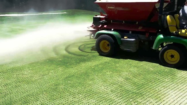 Recebado con arena de un green de golf, previo aireado