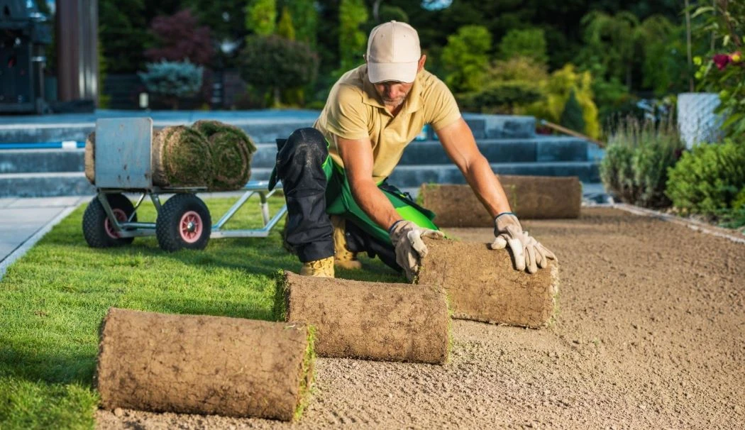 La plantación de tepes de césped natural