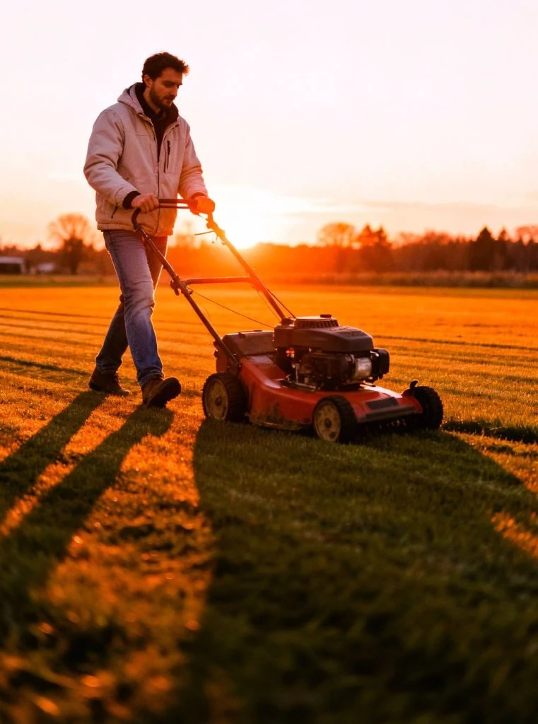 A finales de otoño y durante los cortes de invierno, configura el cortacésped en la configuración más alta (normalmente entre 7 y 9 cm).