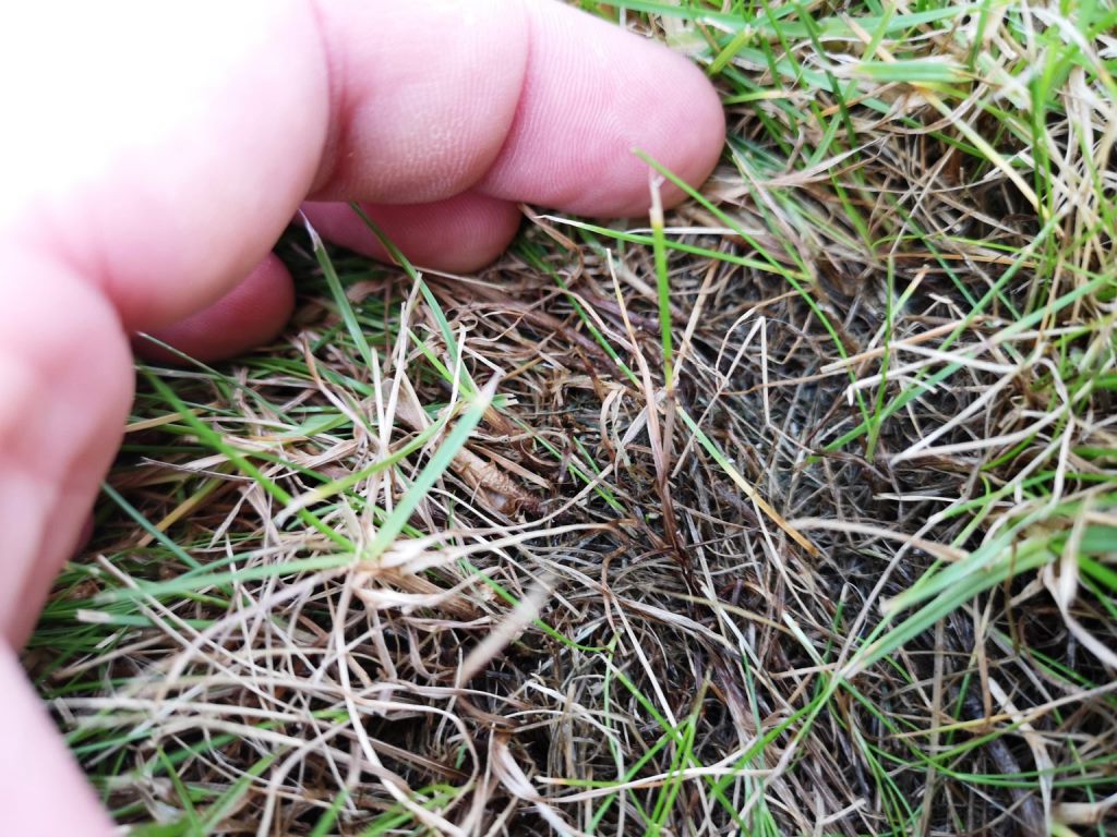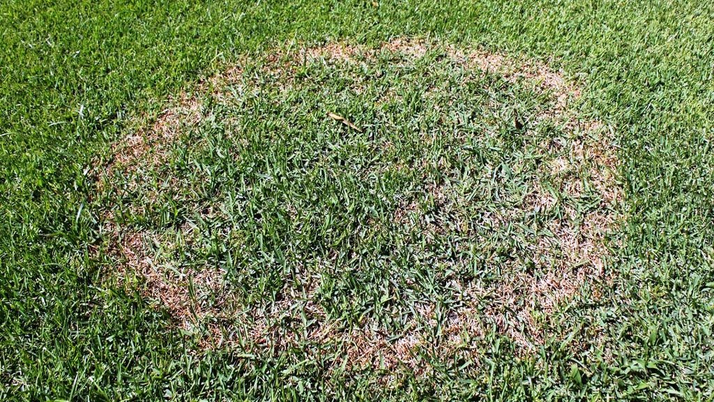 - En algunos casos, una mancha de hierba verde aparentemente saludable estará completamente rodeada por un anillo de hierba muerta creando una apariencia de “ojos de rana”.