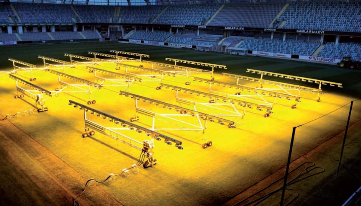 Así que un holandés, Nico van Vuuren a principios del segundo milenio (2003) se le ocurrió aplicarla a los céspedes de los estadios deportivos, fundado SGL, empresa líder en iluminación hortícola para céspedes, a partir de ahí son cientos de estadios los que adoptan esta técnica.