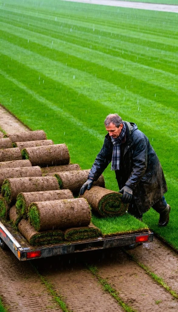 (La plantación de tepes de césped en invierno)