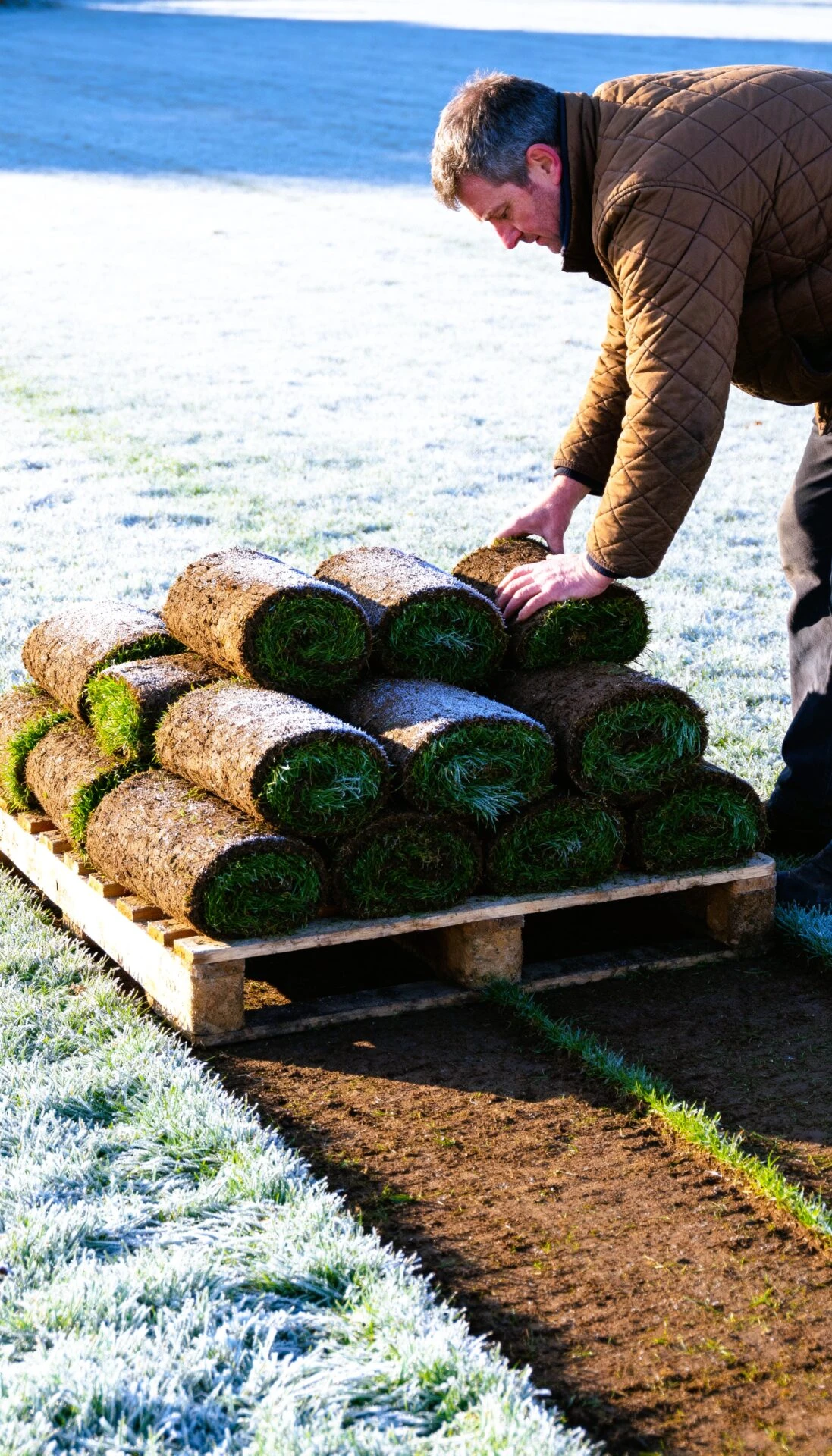 Colocación del tepe el mismo día: Instala el tepe inmediatamente después de su entrega. No lo dejes sobre el palé durante la noche, ya que podría congelarse, si bajan las temperaturas.