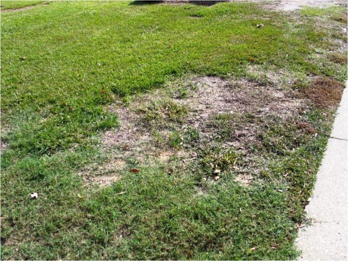 - El aumento gradual zonas de césped poco denso y pajizo, a menudo se ve como de estrés por sequía.