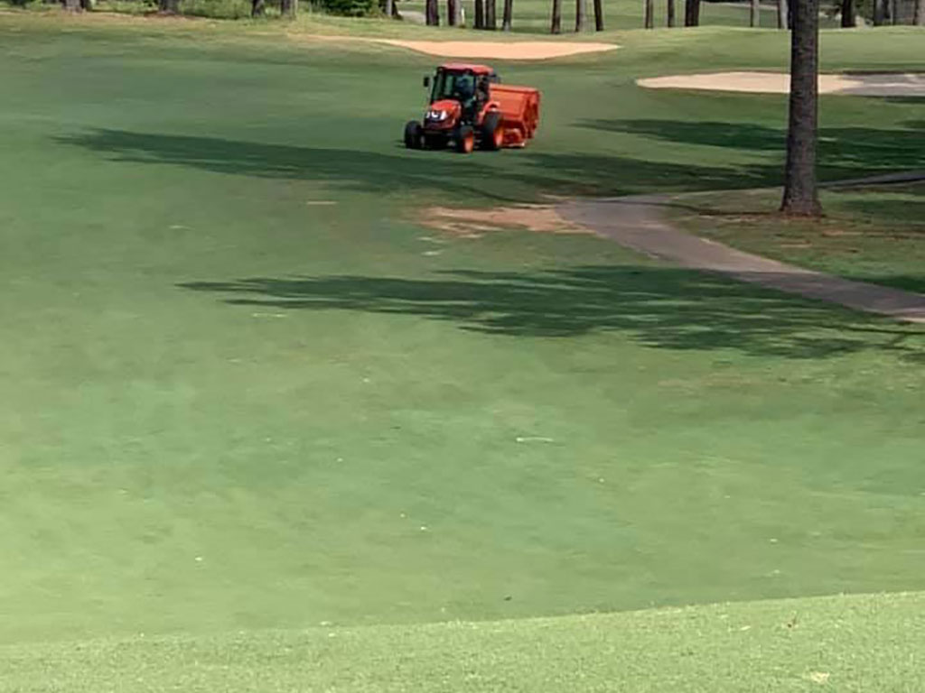 - Con abonadora centrífuga o sembradora de líneas, una vez realizado el aireado o/y escarificado. No tiene la precisión ni la calidad de un overseeding realizado con resembradora, pero puede ser suficiente cuando, como en la mayoría de los casos, no se disponga de máquina resembradora.