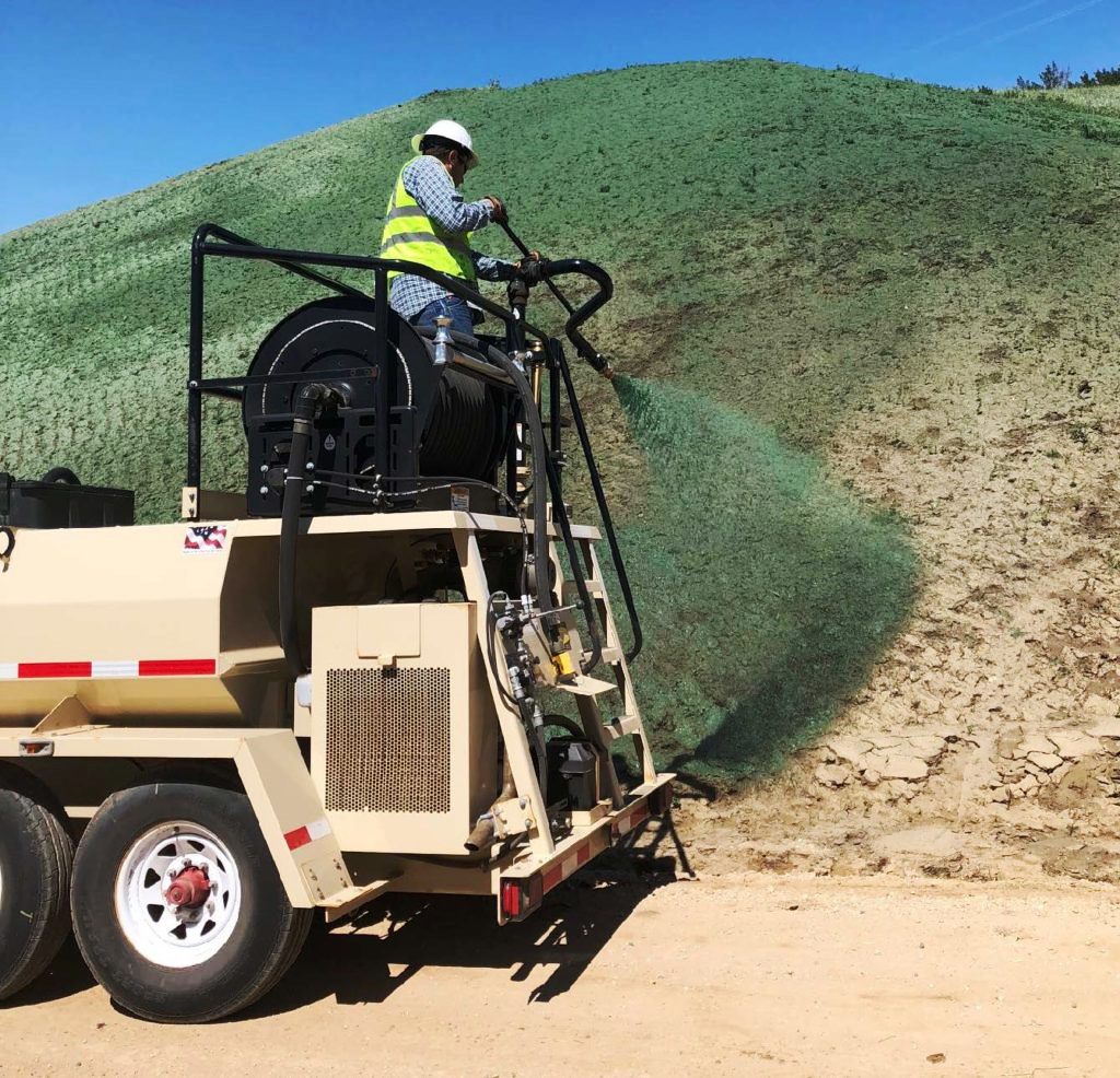 Generalmente la revegetación se lleva a cabo sobre terrenos en pendiente o de difícil acceso, por lo que la técnica más empleada es la HIDROSIEMBRA. Una máquina hidrosembradora consiste en una cuba en cuyo interior se mezclan distintos componentes. El caldo se proyecta sobre los taludes a través de una manguera o cañón, mediante el impulso proporcionado por un compresor. Para facilitar su desplazamiento, la cuba se monta generalmente sobre un camión. El caldo  que se proyecta está formado por los siguientes productos